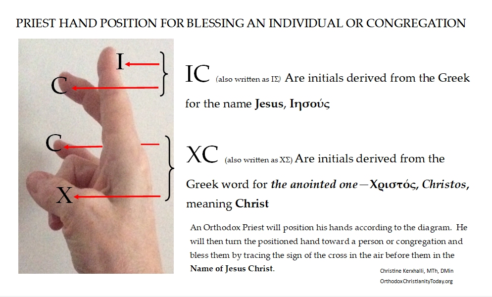 This is a helpful pictorial aid for religious education and home schools that explains how an Orthodox Christian Priest positions his hand when making the sign of the Cross.